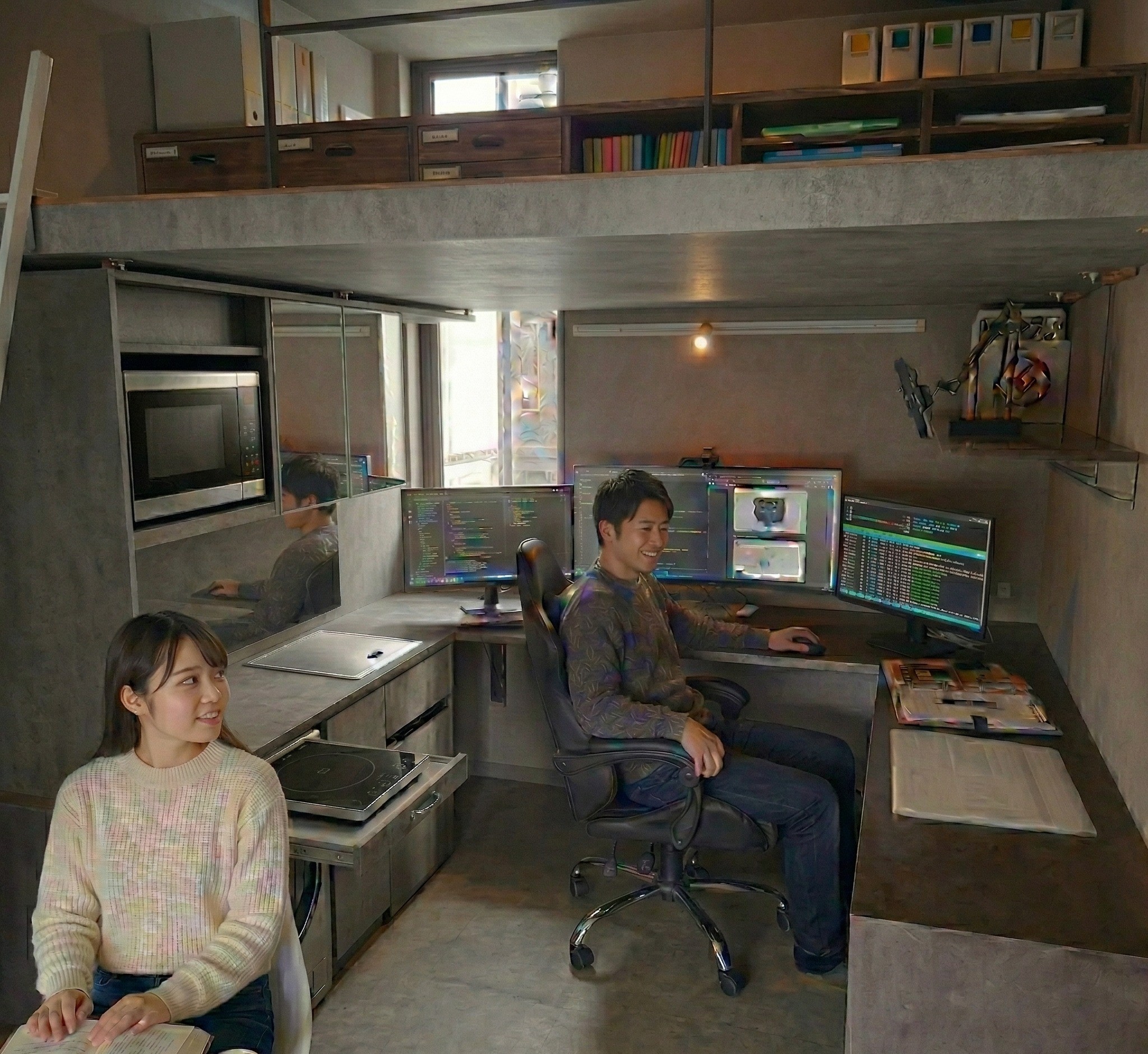 ワンルームの戸建て事務所(ワン戸建) 紀寺のモデルハウスを少しだけAIでステージングしました。 オリジナルのミニキッチンを盛り込みました。 引出式IHも表現して…