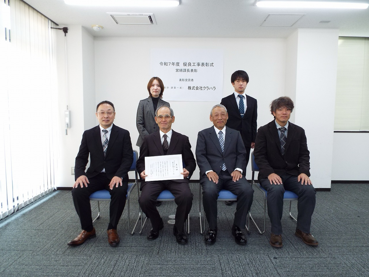 令和7年度 奈良県県土マネジメント部優良工事表彰を受賞しました。 11月27日に、令和7年度 奈良県県土マネジメント部優良工事表彰の表彰式が行われました。弊社が…