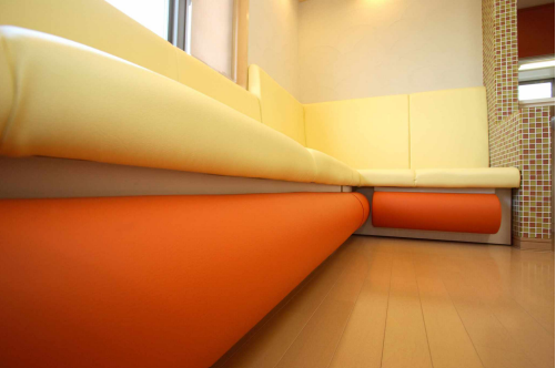 ・ベッドを背もたれに活用: ベッドの側面にクッション地を貼り付け、地べたに座った際に背もたれとして使えるようにしました。空間を無駄なく活用するタイニーアーキならではのアイデアです。(画像は参考)
